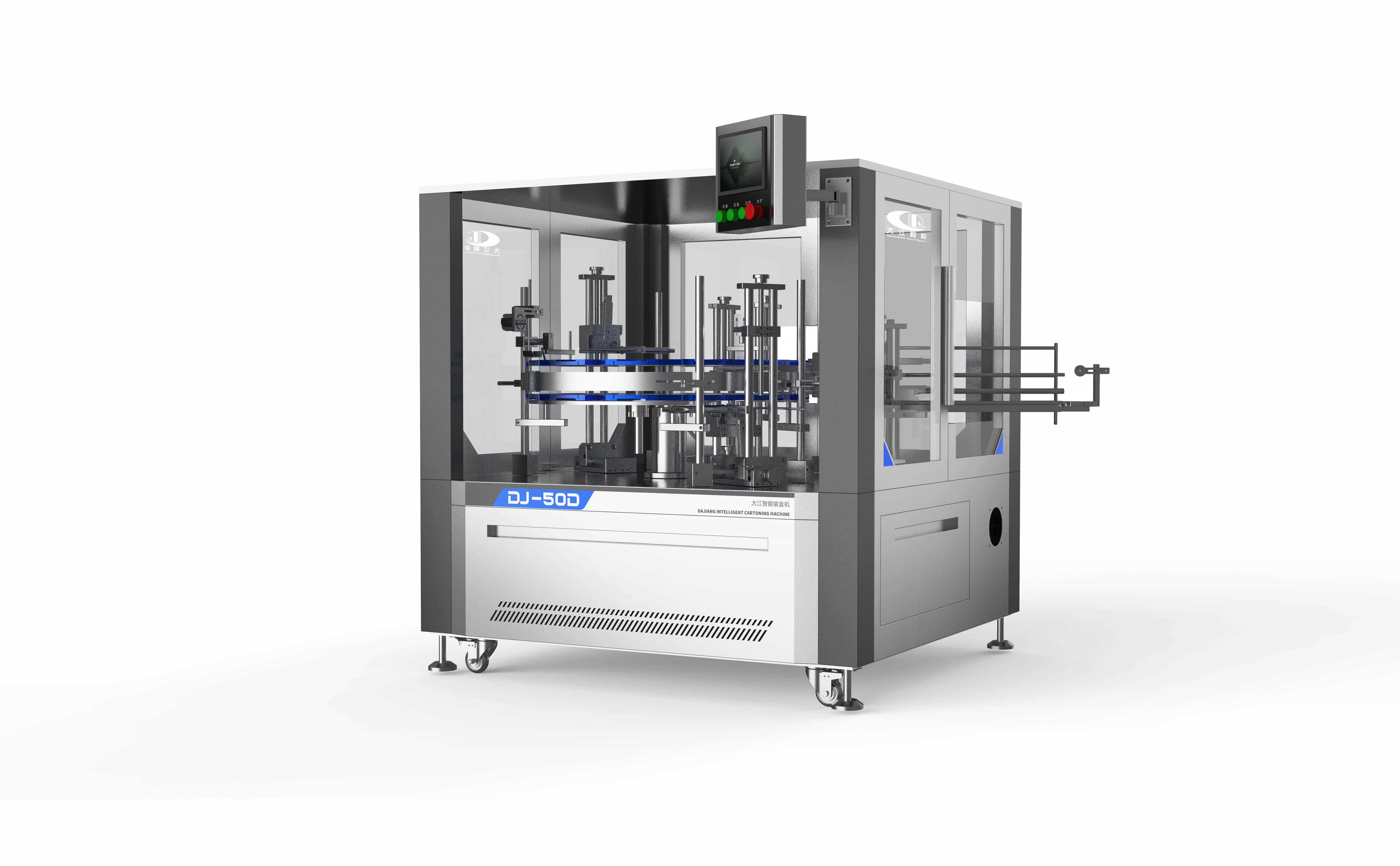DJ-50多功能立式裝盒機適應(yīng):制藥行業(yè),食品行業(yè),化妝品行業(yè),電子行業(yè)紙盒立式自動成型包裝。